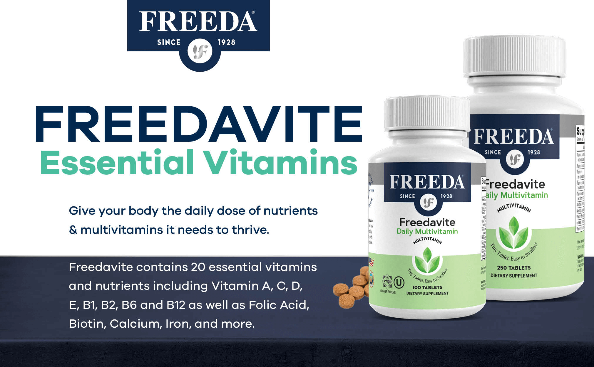 Freedavite is a good multivitamin that is a very small size and makes it easy to swallow. Multiple of my family members use it daily. It is much easier to swallow than other brands especially since we also take other pills daily.