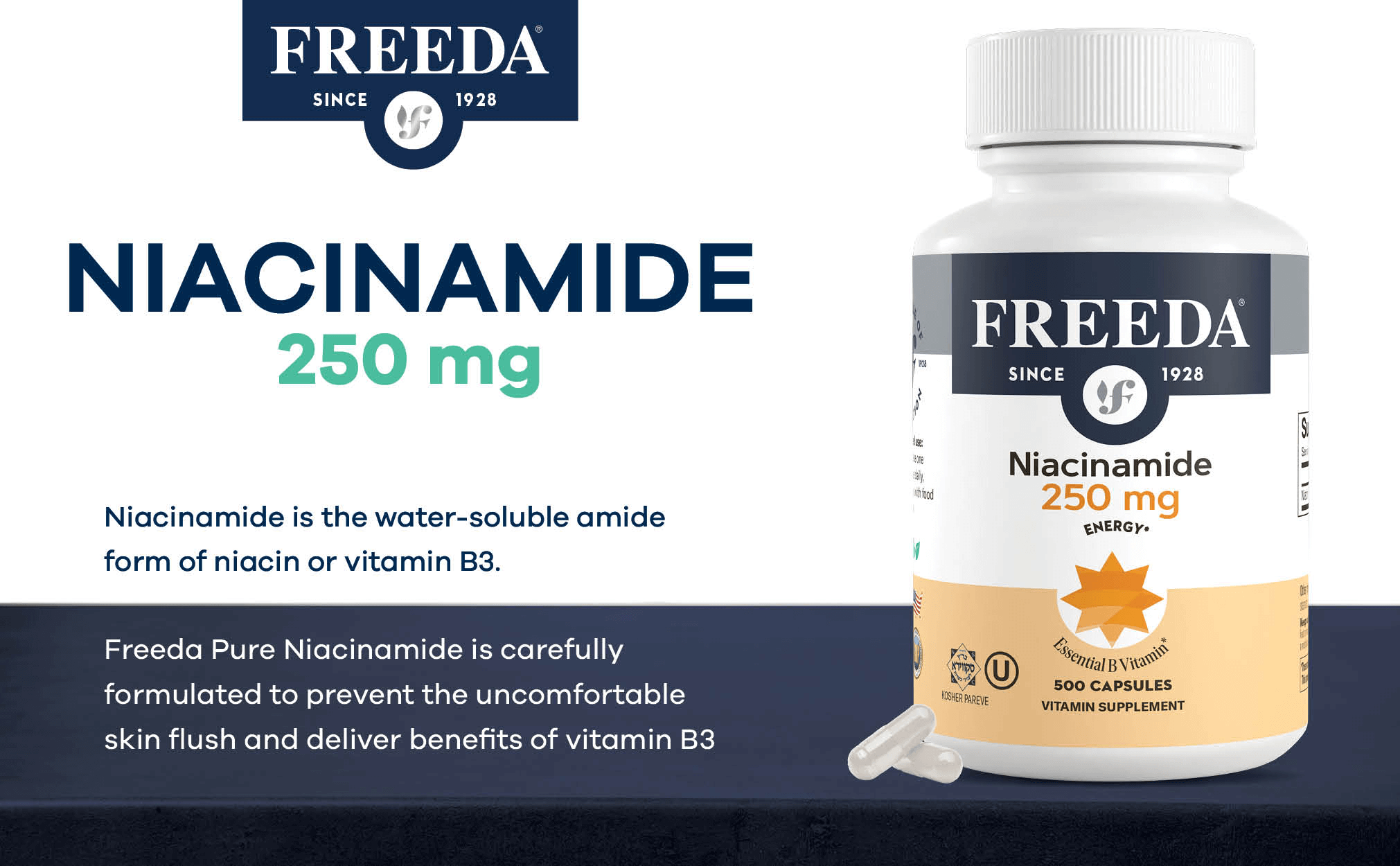 - NON-FLUSHING FORMULA – Freeda Pure Niacinamide does not cause flushing or result in uncomfortable physical effects. Our no-flush niacinamide delivers the benefits of Vitamin B3 without the niacin flush that is common to other niacin supplements.