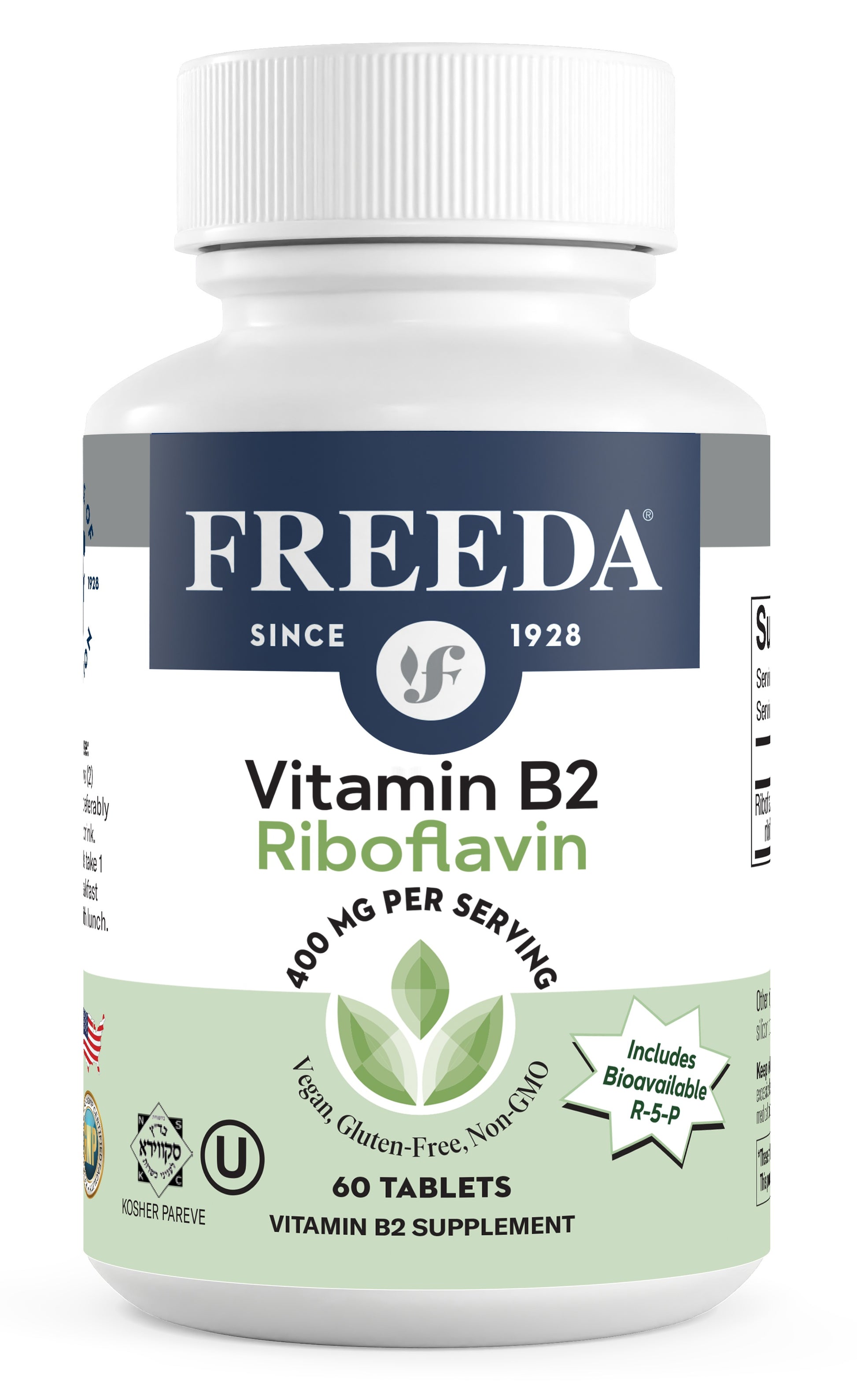 Freeda Vitamin B2 400 mg with Riboflavin-5-Phosphate (R-5-P) is a high-potency, dual-form formula designed for those seeking advanced nutritional support for energy, metabolism, and neurological balance.* Studies show that daily supplementation with 400 mg of riboflavin may help maintain normal mitochondrial energy production and support head comfort in individuals experiencing occasional migraine episodes.*