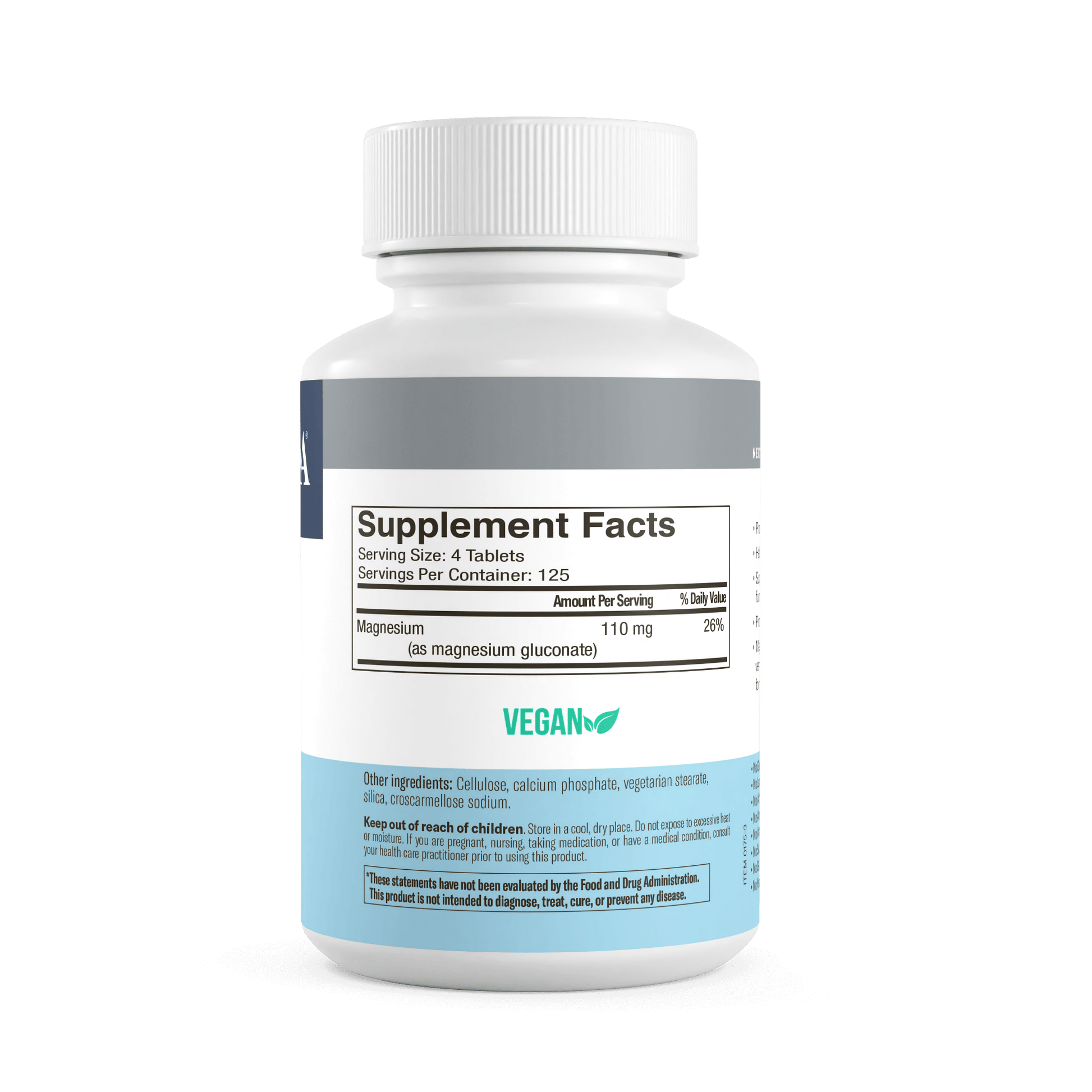 - PURE MAGNESIUM GLUCONATE: Contains 2,000 mg of magnesium gluconate per serving (4 tablets), providing 110 mg of elemental magnesium. A gentle, bioavailable form of magnesium ideal for sensitive individuals.*