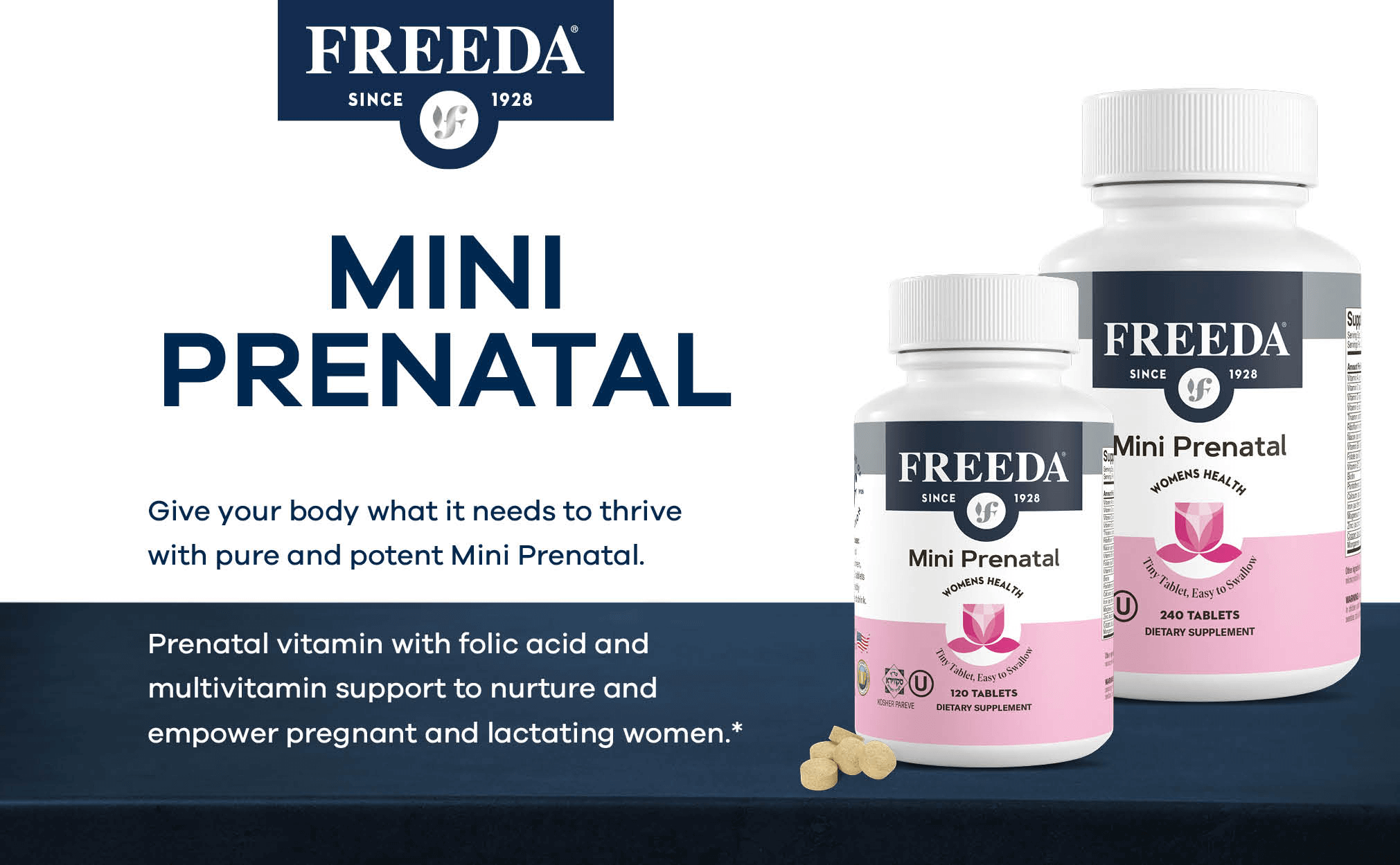 - MINI PRENATAL: Formulated to nurture and empower pregnant and lactating women, our Mini Prenatal is a compact supplement with folic acid and multivitamin support. Many women find our mini tablets easy to swallow, making them a preferred choice during pregnancy. Just 2 tiny tablets daily!