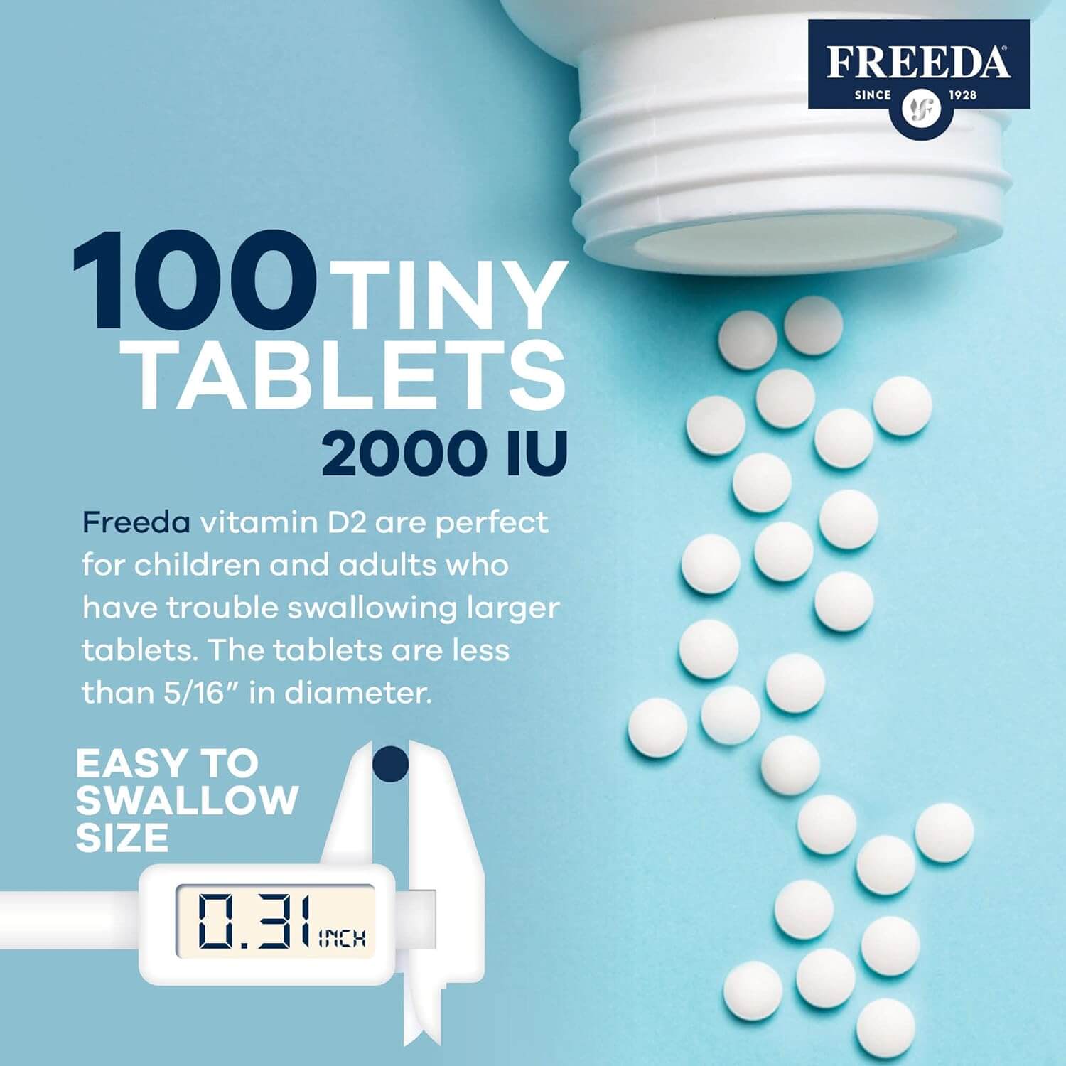 - PROUDLY MADE IN USA - Freeda D Vitamin serving size is just a single tiny tablet, making it the easiest form to swallow. Proudly Made in the USA in a GMP certified facility under strict quality assurance guidelines.